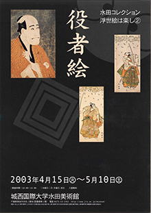 このたびの展覧会では、水田コレクションの9点の写楽作品のうち3点を出品いたします。鳥居、勝川、写楽、そして幕末最大画派となった歌川派の作品によって、役者絵の豊かな展開をじっくりご覧ください。