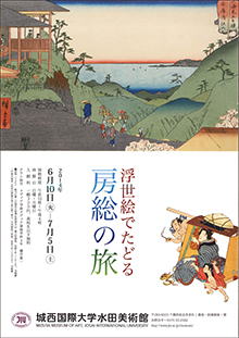このたびの展覧会では、「成田山への旅」「東国三社参詣と磯巡りの旅」「南総の旅」に分け、旅のガイドとなった絵図や名所図会、現地での見聞を記した紀行文を参考に、風景版画によってその旅路をたどります。電車や自動車のない時代の房総へ、物見遊山の旅にお出かけください。
