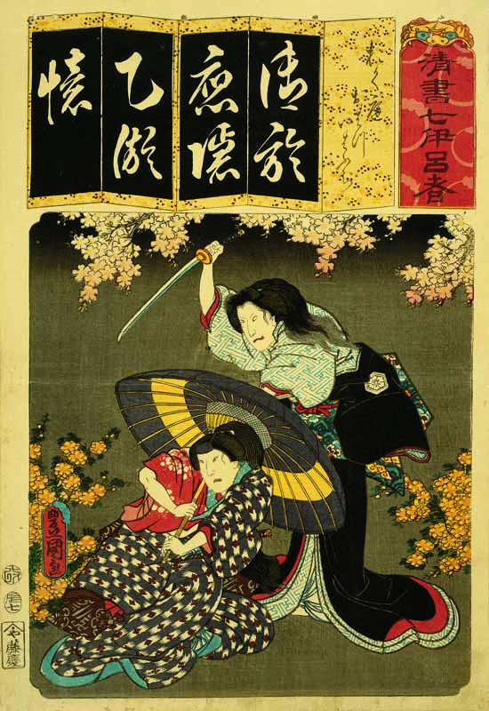 Seven Variations of the Iroha Syllabary: The Syllable O for Palace Garden (Oku niwa); Ohatsu and Iwafuji