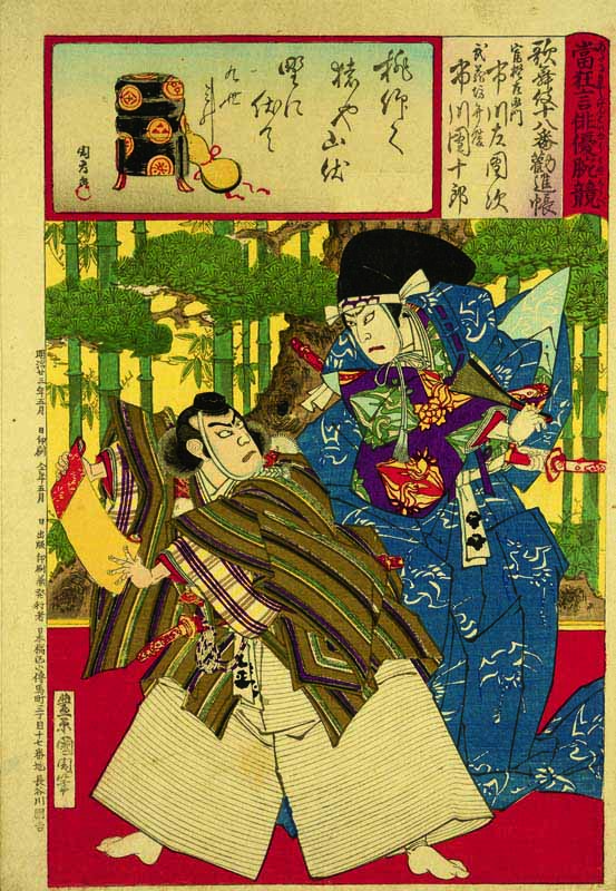 当狂言俳優腕競 歌舞伎十八番勧進帳 市川左団次の富樫左衛門と市川団十郎の武蔵坊弁慶