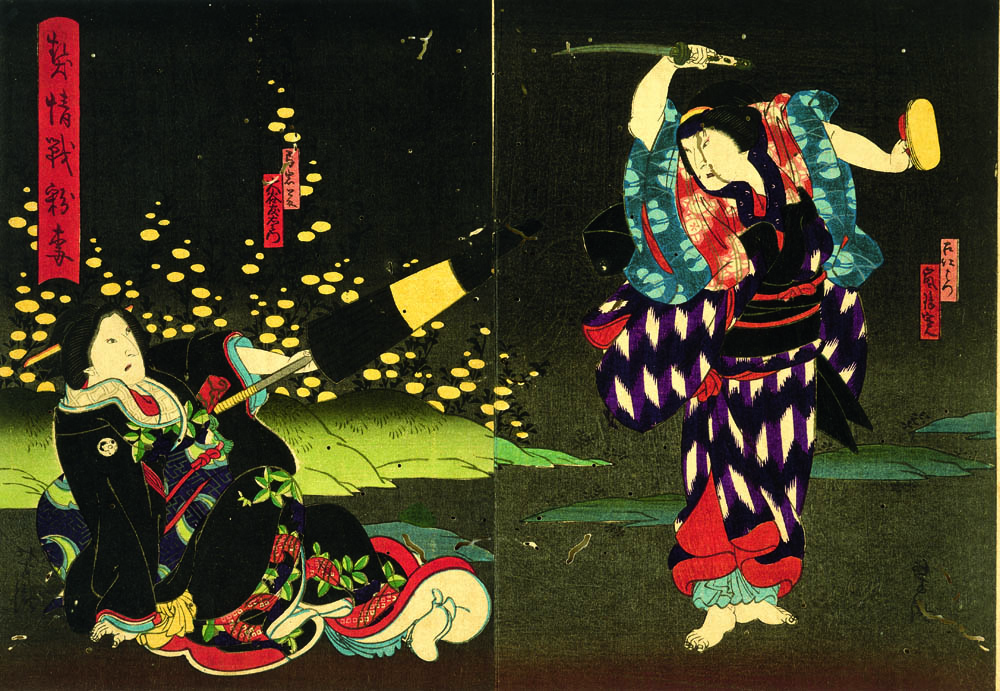 Kagamiyama Kokyō no Nisiki-e: Ōtani Tomoemon as Court lady Iwafuji and Arashi Rikan as Servant Hatsu