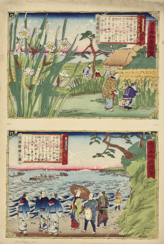 大日本物産図会 安房国水仙花 同国[魚登]網之図