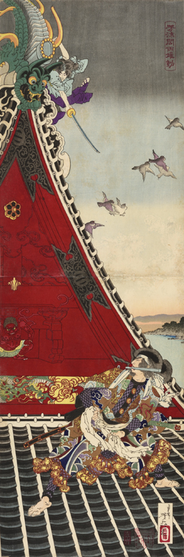 Two Great Men Fight on the Roof of Hōryūkaku