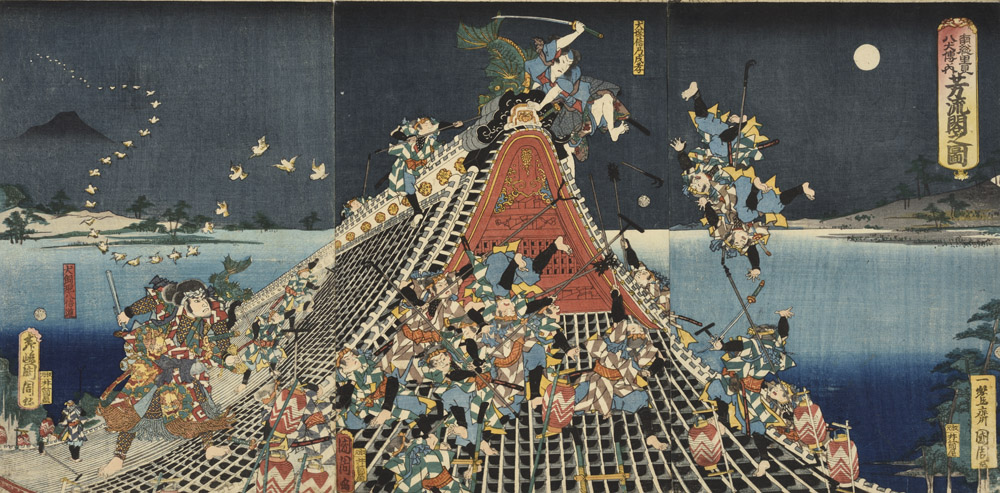 南総里見八犬伝ノ内 芳流閣之図 犬塚信乃戍孝 犬飼現八信道