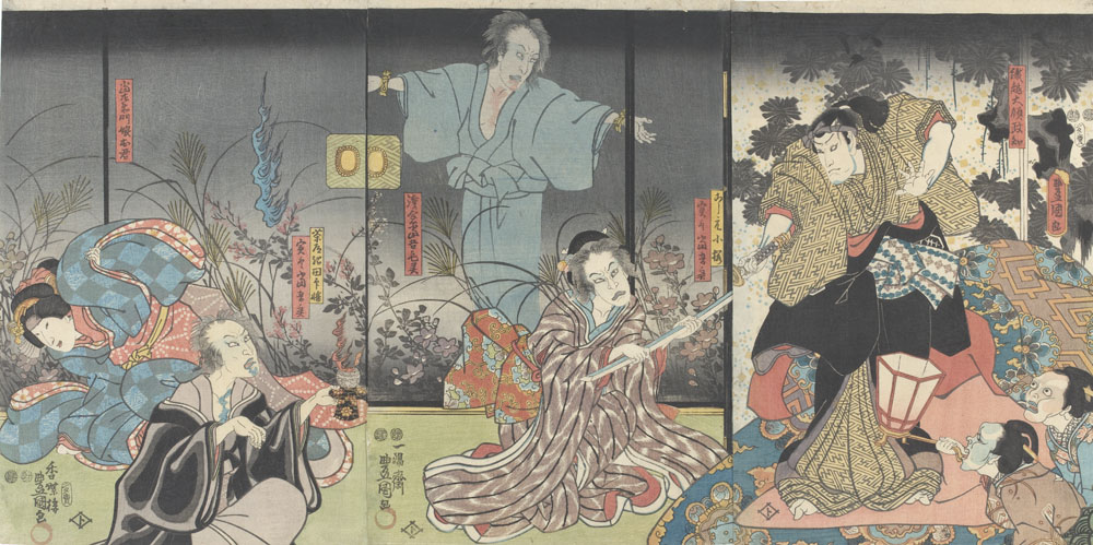Lord Orikoshi Masatomo, Lady’s Maid Kozakura, Actually the Ghost of Tōgo, the Ghost of Asakura Tōgo, Tea Server Numata Imba, Actually the Ghost of Tōgo, and Tōzaemon's Daughter Okimi