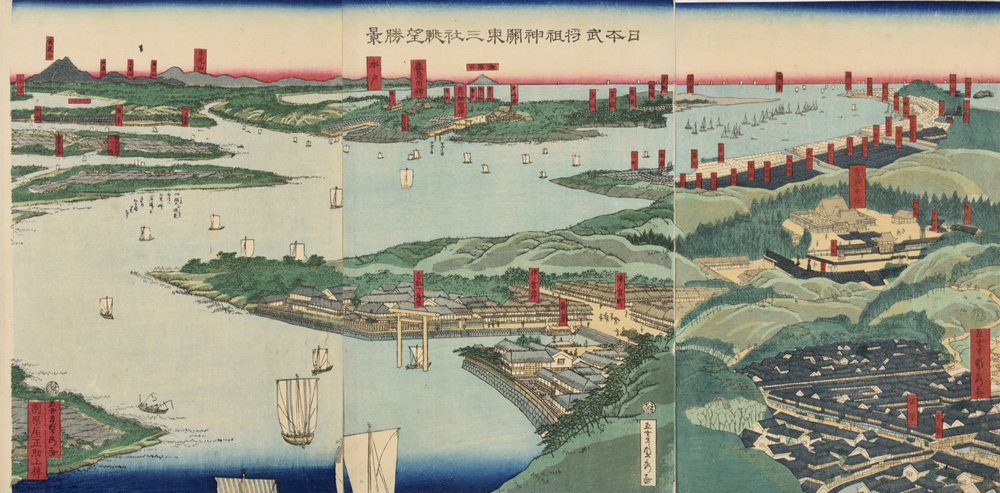 Landscape Including Three Shrines in Kanto Dedicated to the Patron Deities of Martial Arts