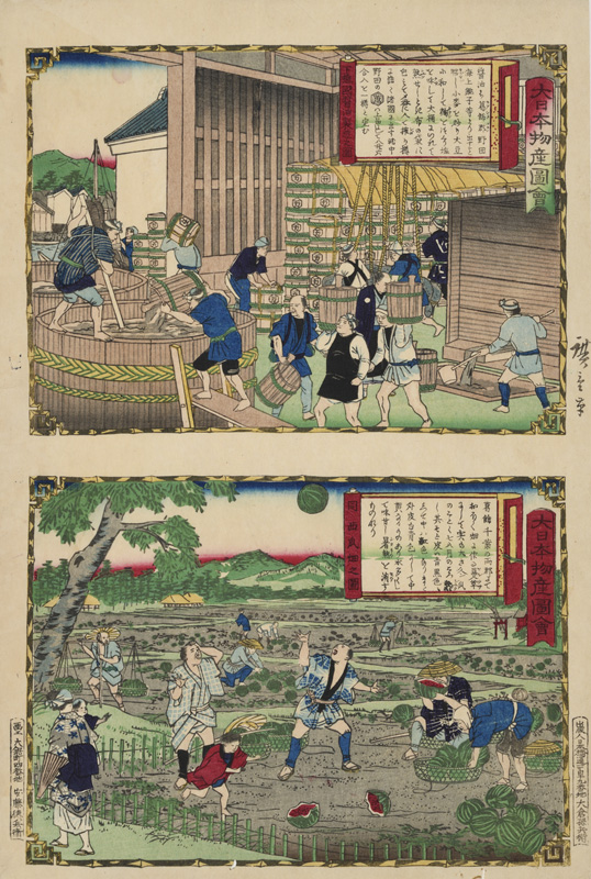 大日本物産図会 下総国醤油製造之図 同西瓜畑之図
