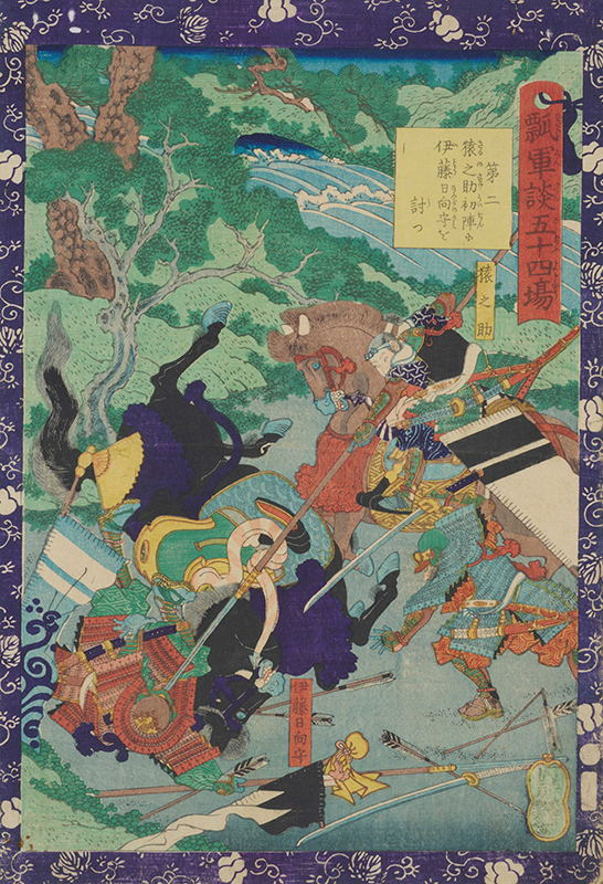 Fifty-four Scenes from the War Chronicle of Hideyoshi: No.2, Sarunosuke Kills Itō Hyūganokami in His First Battle