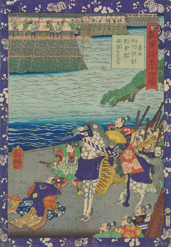 Fifty-four Scenes from the War Chronicle of Hideyoshi: No.4, Konoshita Sōkichi Repairs the Damage through a Division of Labor