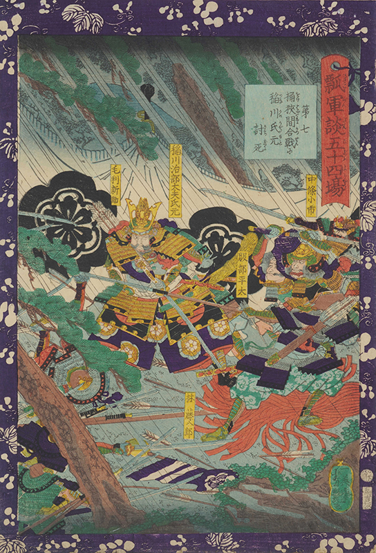 Fifty-four Scenes from the War Chronicle of Hideyoshi: No.7, Inagawa Ujimoto Is Killed in the Battle of Okehazama