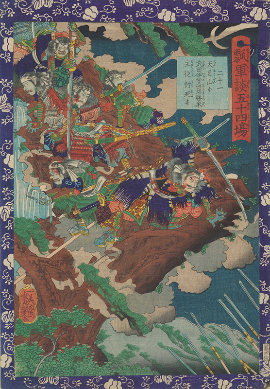 Fifty-four Scenes from the War Chronicle of Hideyoshi: No.21, Takeda Iganoshirōkatsuie and His Servants Are Killed at Mt. Tenmoku