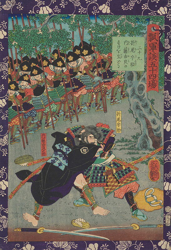 Fifty-four Scenes from the War Chronicle of Hideyoshi: No.39, Orio Usuke Gets Naitō Yuranosuke Alive