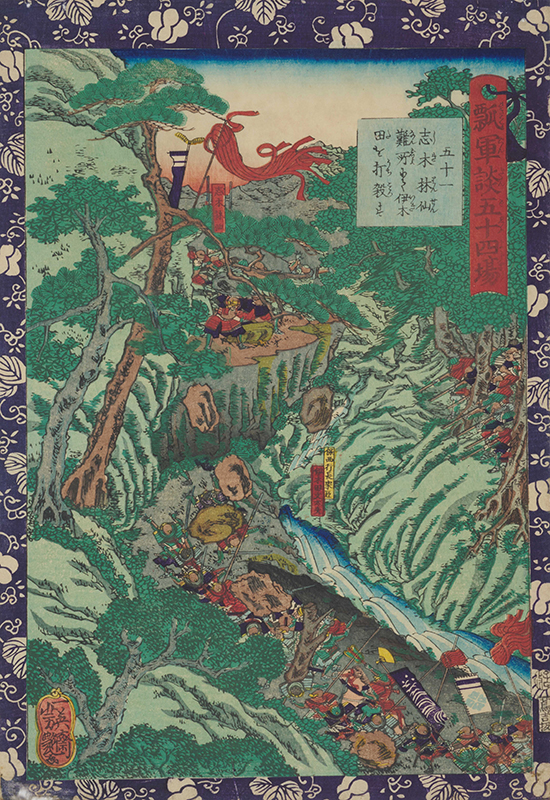 Fifty-four Scenes from the War Chronicle of Hideyoshi: No.51, Shiki Rinsen Beats Ikita to Death at a Dangerous Spot