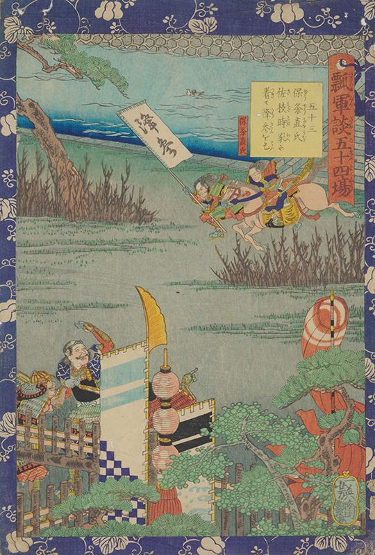 Fifty-four Scenes from the War Chronicle of Hideyoshi: No.53, Hojō Naouji Offers His Surrender to Saeda Tokiie